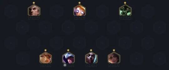 男刀达到三星后基本成型,乌鸦、狼人、奎因和机器人等2费英雄可以同时搜出三星,最后胜到7人口后加入艾克。