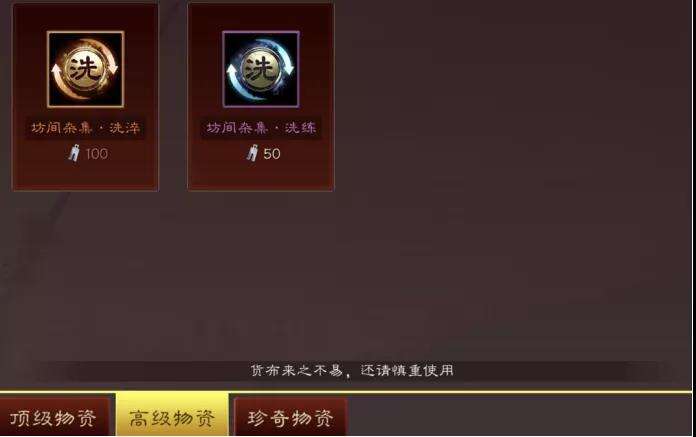 高级物资,消耗银货布,对应了洗练。