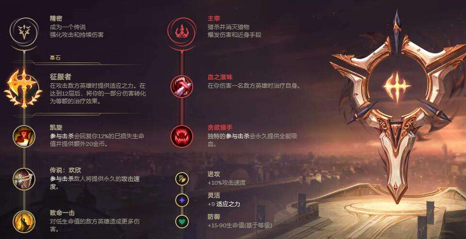 (2)副系符文:主宰+血之滋味+贪欲猎手;