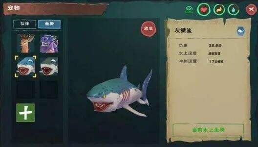等鲨鱼头上出现爱心以后,就可以使用马鞍将鲨鱼成功捕捉了。