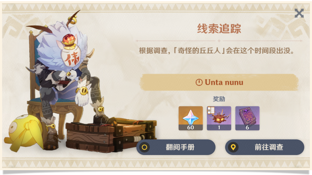 1、玩家要根据任务线索进行追踪,前往丘丘人出没的目击地点进行调查;