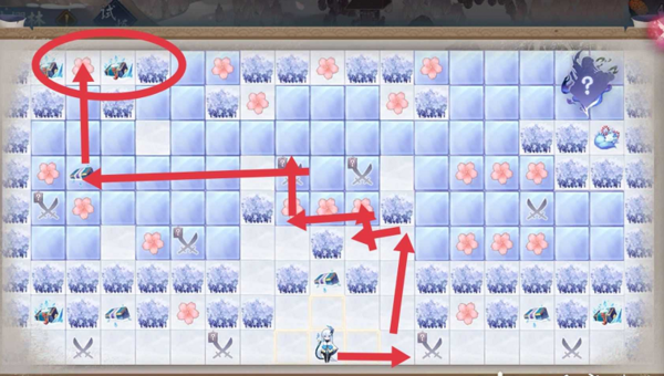 图三:一叶试炼四左上角樱花拿法(剪头重叠的怪要打)