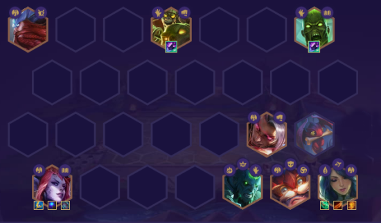 前期可以选择用3丧尸打工,也可以使用3圣光卫士打工。来了三龙族直接上,现在版本前期可以自选装备,所以装备合成难度变小,艾希来了就直接给他做装备。前面可以给艾希凑2游侠。7级开搜,搜出二星艾希,凑齐3丧尸3龙族2游侠2斗士。装备合适的话可以一直赢。