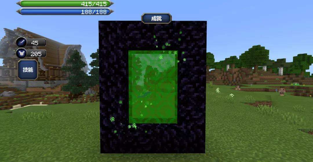 然后用刚刚获得的钥匙代替打火石点燃黑曜石,即可生成这个绿色的传送门。