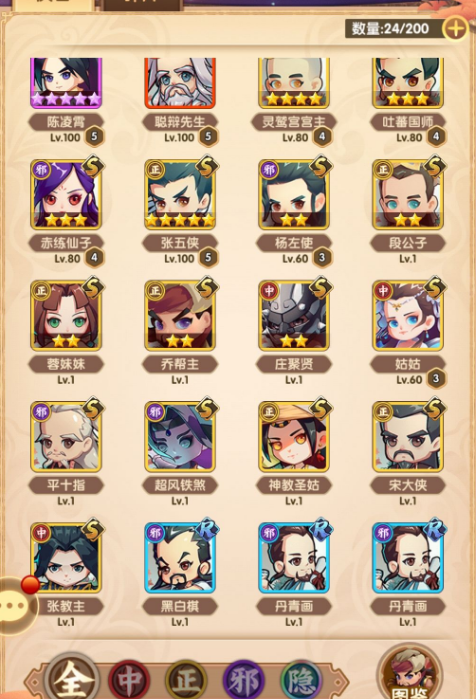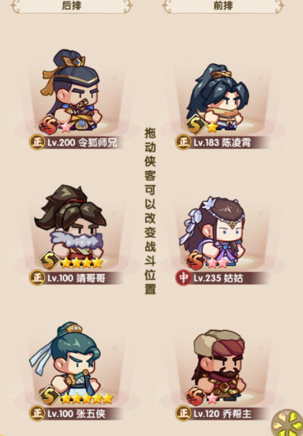 总结:目前侠客推荐队伍就四种,令狐,教主,星宿,神雕+姑姑乔帮主+薛/平/赤练/郭靖+各种辅助角色