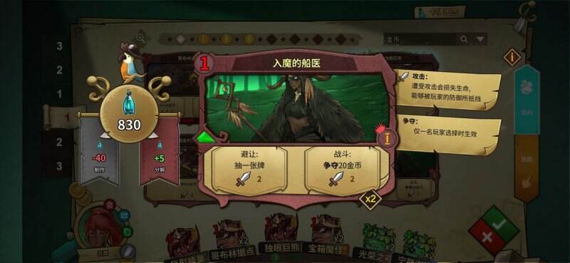 红岛选择很多,分金币的,过牌的,活下来加血的,依然是选择有正面效果的,注意你在有共舞时分不到金币,过牌或者尽可能别掉血就行了。