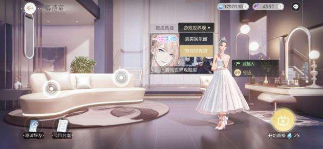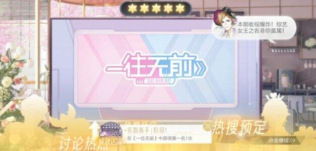 首先进入通告里面的《一往无前》等待室,题库有真实娱乐圈和游戏世界观两种,女明星们选择自己熟悉的题库进行答题,这样更容易得第一哦。