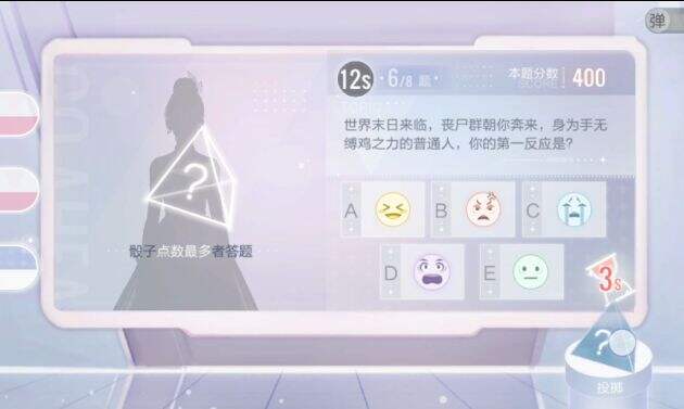 嘉宾掷骰子,点数最大者可回答题目。掷骰子倒计时只有3秒,千万别错过了。