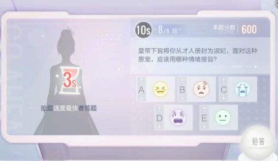 “极速抢答”只有1道题,600分,限时10秒。这道题是抢答题,谁先抢到谁就可以回答。