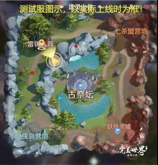 通过观察逸灵山谷的地图我们可以发现,需要占领的三个点位雷铸石阵、古祭坛、脉跃之墟分别位于地图的左上方、中部和右下方,但一般情况下,地图中间位置的古祭坛聚集的人数是最多的,往往也是战斗最激烈的地方。建议开局时大家可以优先考虑石阵和灵墟这两个点位。