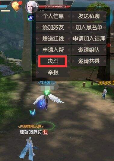 同时,还可点击玩家头像菜单向非同组队、团队发起决斗宣战,宣战后,无需修改对决保护模式即可攻击宣战对象,同时宣战对象也可进行反击。