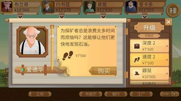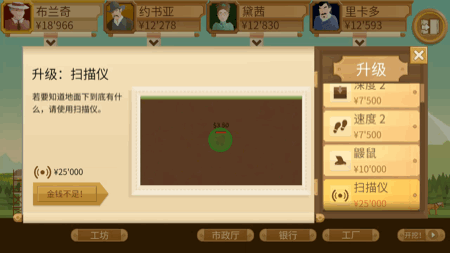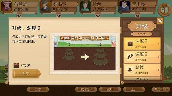 主要是与探矿相关,可以改进探矿杖,从而使得探矿者可以进行更深的探索,这对于找寻地图中藏匿的比较深的资源有所帮助。因为在前期工作周期比较短,所以地图上表层的资源一般不会全部开采完,所以这是一个比较偏向于后期的科技,不用急于选择购买升级。