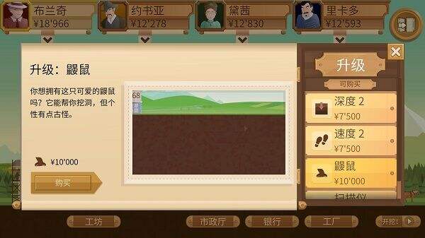 这是一个比较特殊的科技,没有解锁之前是无法应用于局内的,它的作用是通过花费金钱召唤鼹鼠来随机在地图上挖洞,从而提升找到资源的概率。它与探矿者相比较的话,优点在于价格低廉,只需要10块钱,而探矿者需要100块钱,而缺点也很明显,就是随机性比较大,不如探矿者是必找到石油。