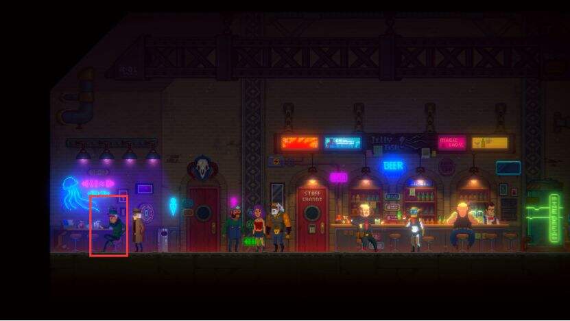 在车上主角回想了今天的案子,觉得有很多疑点。到达酒吧后,这里基本没有什么解谜。左边的游戏机可以打小游戏,你可以隐藏调查客人,听他们说话。