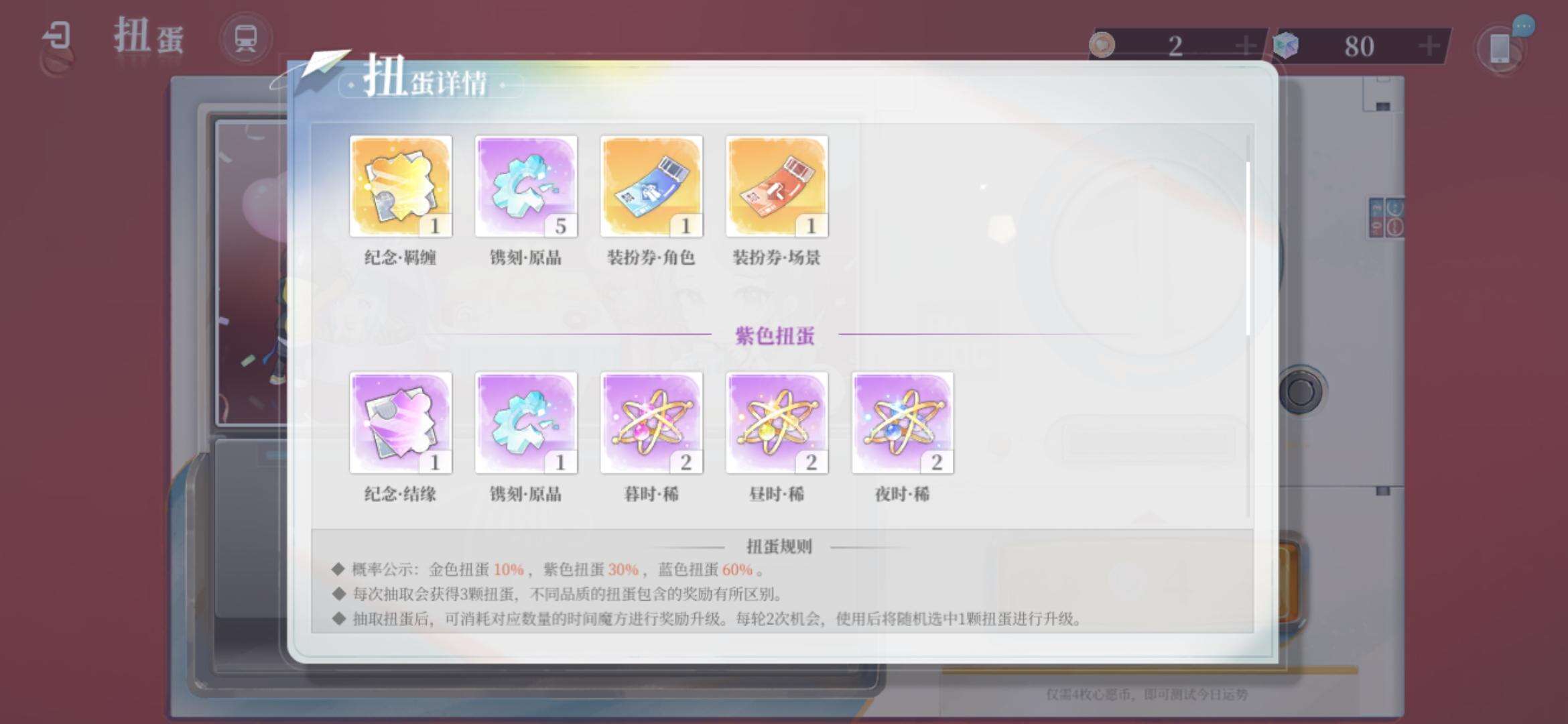 4枚扭蛋币可以进行扭蛋