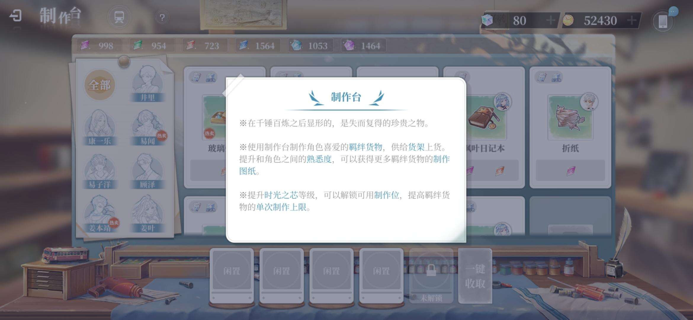 拾光梦行忆仓前期可以专注提升某个角色的好感度 提升好感度等级 解锁新的图纸