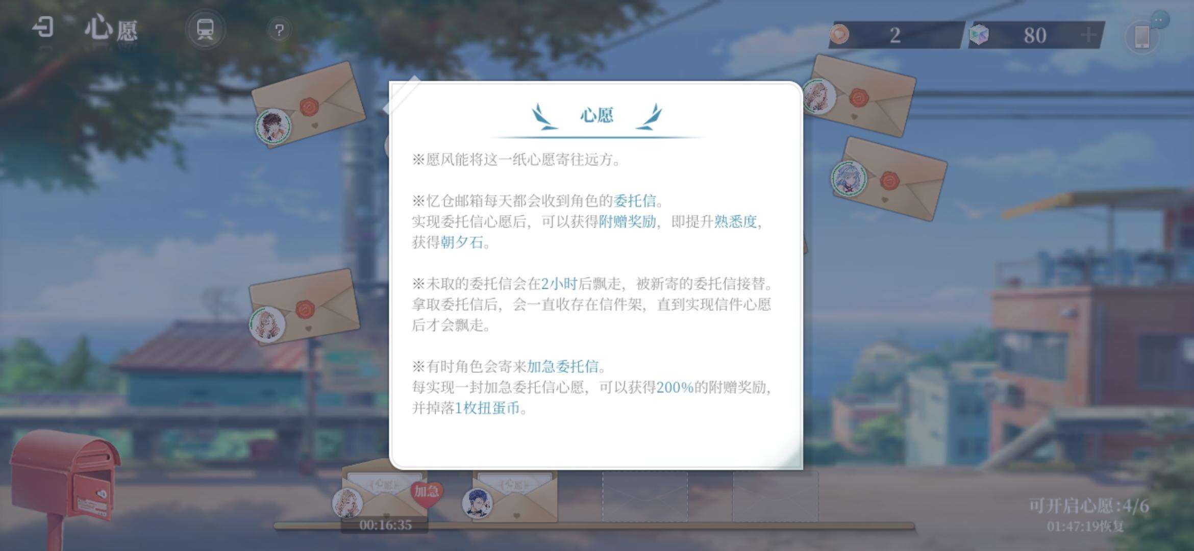 通过接取委托信 提高角色熟悉度 解锁更多图纸 (加急委托信是随机接取的 可以获得扭蛋币)