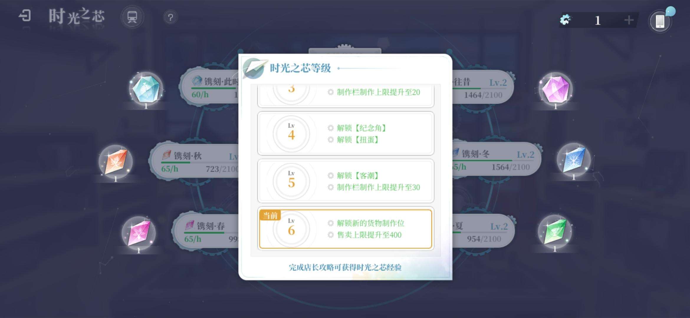 产出速率与储存上限与时光之芯的等级相关