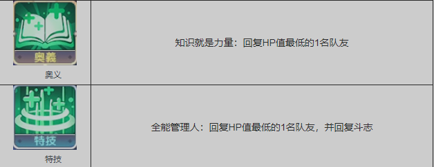 法兰雀丝卡能够为生命值最低的队员提供生命的回复,同时恢复他的斗志。