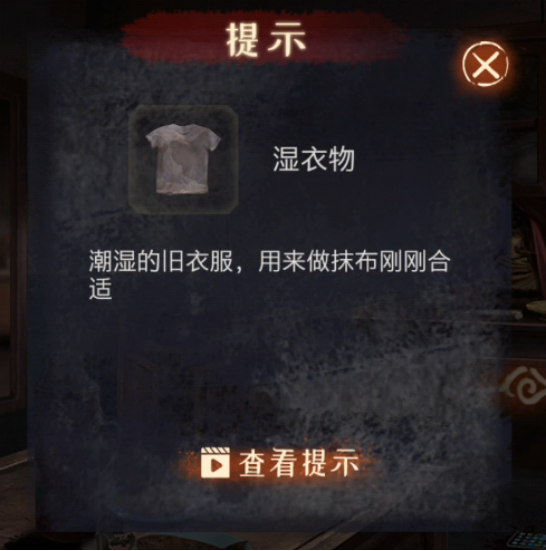 来到中间房间,用破衣服蘸上保暖瓶下边漏出来的水,得到【沾湿的破衣服】