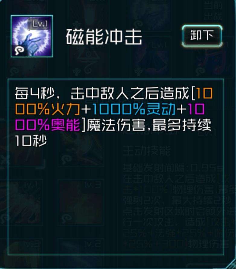 这套的思路和上一套差不多,都是要爆伤和爆率,不一样的是我们要把cd拉满,我带了两个件减cd的技能,目的就是把磁能冲击这个技能无限释放,因为可以存在十秒不停弹射,所以可以召唤好几个弹,使伤害爆表。另外这套的暴击频率特别高,所以我带了高射炮弹当做副c技能来用。