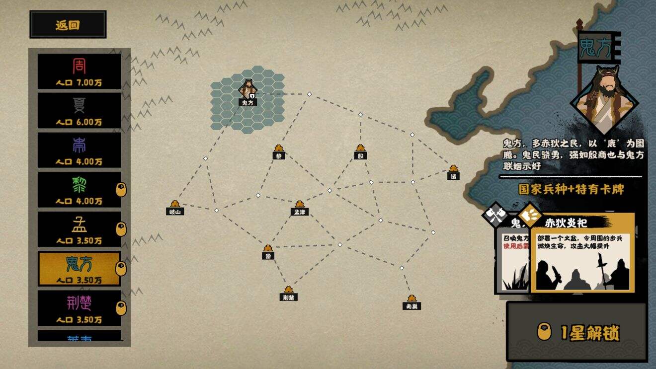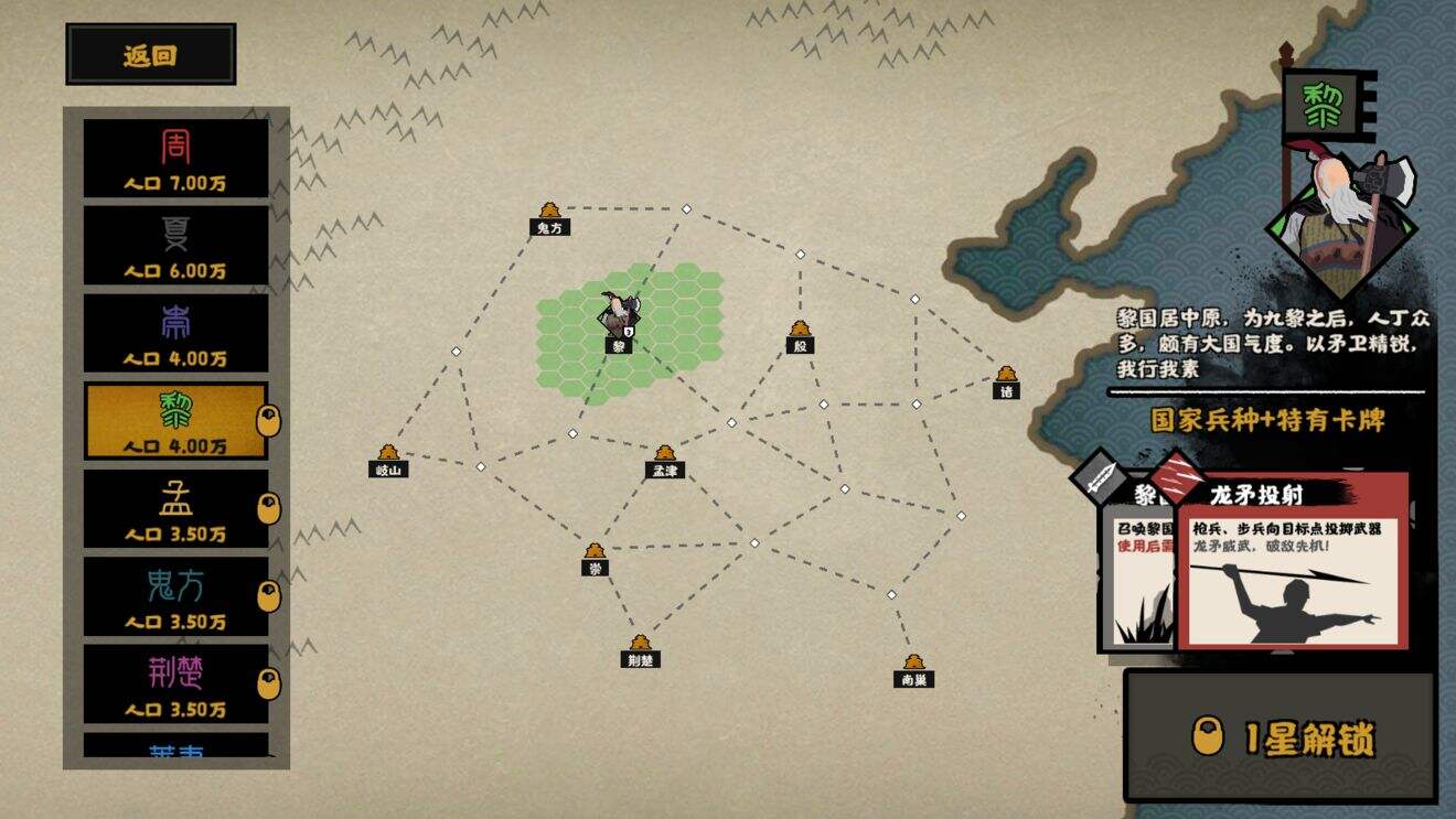在游戏中,黎国东面毗邻宗主国商朝,南北各与一处无主之地相接壤,位置相对独立安全,但向外拓张时势必要面对周与鬼方。这个高傲却又屈居为商朝附庸的方国,能否在你的带领下摆脱成为商朝炮灰的命运呢?