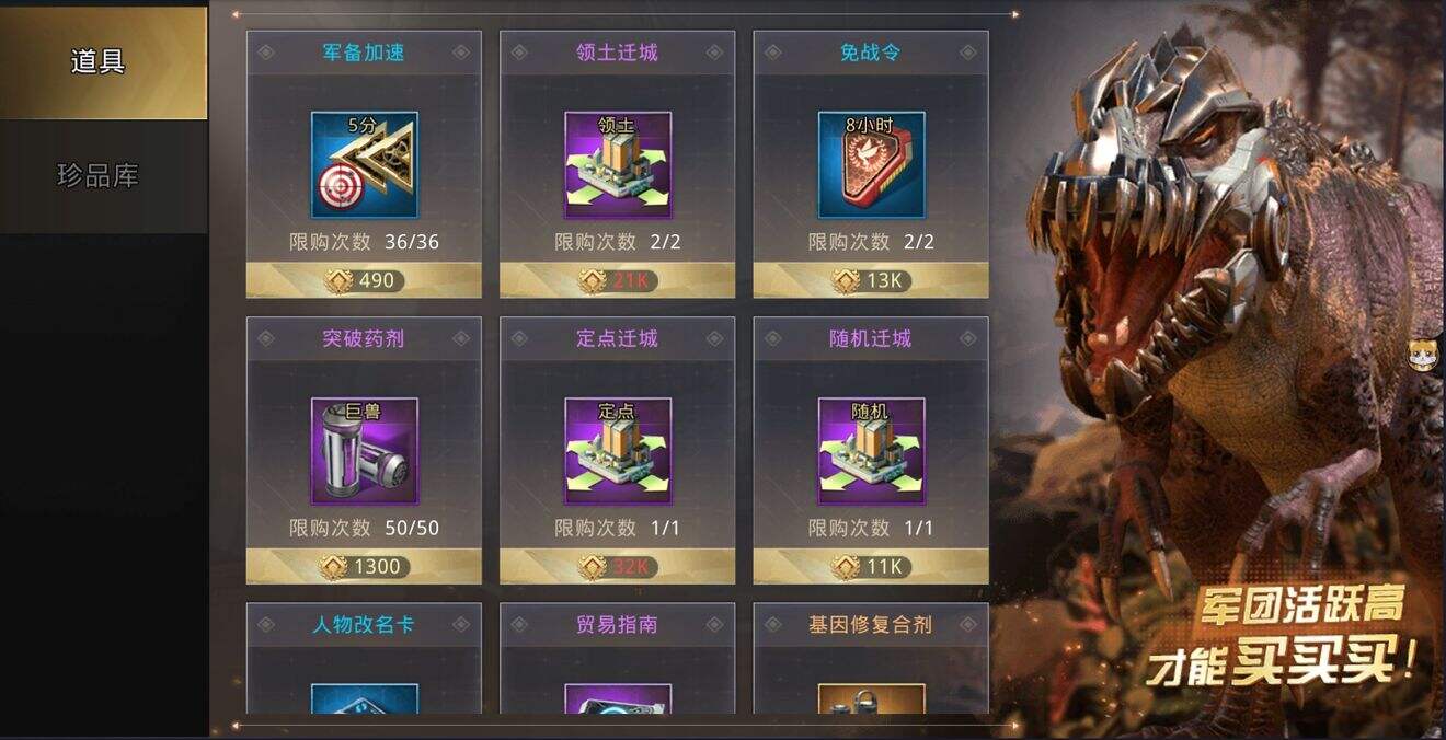 ②联盟商店一周刷新一次,必买定点迁城,领土迁城,后面需要很多。和平发展的话也可以考虑买升级贸易的材料。