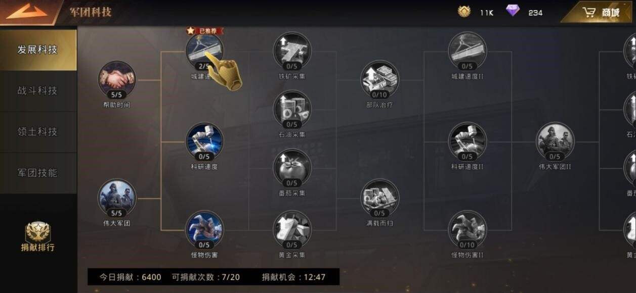 ①军团贡献:可以通过建设军团分部来获得,每天贡献上限一万。获得的贡献值是根据你参与的修建时长计算贡献值,兵越多建的越快。反之则是兵越少,建得越慢时间就越久。建设时可以只派个巨兽建设。