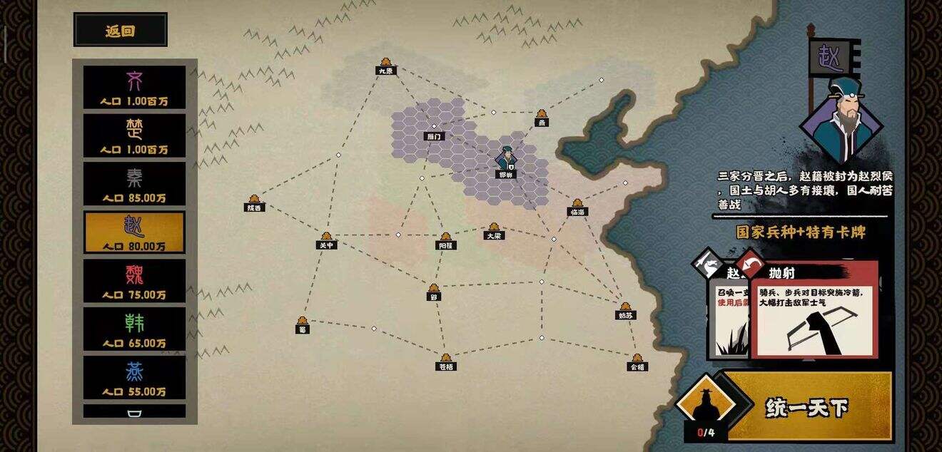 拿到马场和军营,点出政策,如果这时候齐或魏打你你就让不要出兵让他占领即可,只守最后一波,点出能点的军事政策,再点民生,中期拿到士子升级到虎符就行,国策能选行动力就选没有就侧重选,