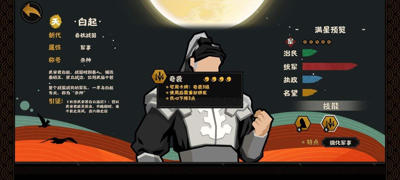 齐国的人口是相当多的,但是腐败也是相当高的,在没有商鞅比干这些卡前,齐国的腐败是根本压不下来的。所以我其实更推荐玩家去玩看似比较弱的越国。首先,越国的特色子弟兵以及技能卡足够强大,在前期各国兵力相同的情况下,能够爆发出相当大的优势。此外,尽管越国旁边没有白城,但是拿下旁边的国家以后就能与白城连地。而北方的楚国特色兵种是车兵,刚好被越国克制,因此越国的发育远比想象的要简单的多。