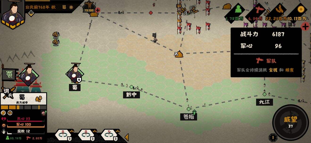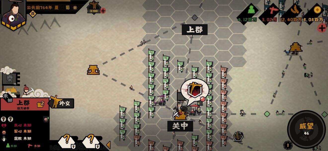 咱们的选择也多了起来.偷寿春,入关中,打会稽都是可行的。读者姥爷:外交呢?你小国不玩外交的?抱歉,是真的不需要。此时此刻越国忙着和吴国掐架秦楚也在酣战,我们也没必要去找人结盟。对蜀国来说,未免太浪费外交点。毕竟咱们“穷兵黩武”,嘻嘻。
