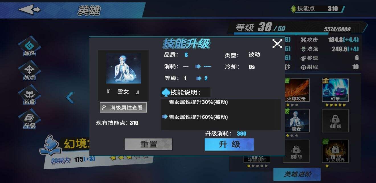幻境女王30级固定技能为雪女,故而兵种优先选择雪女