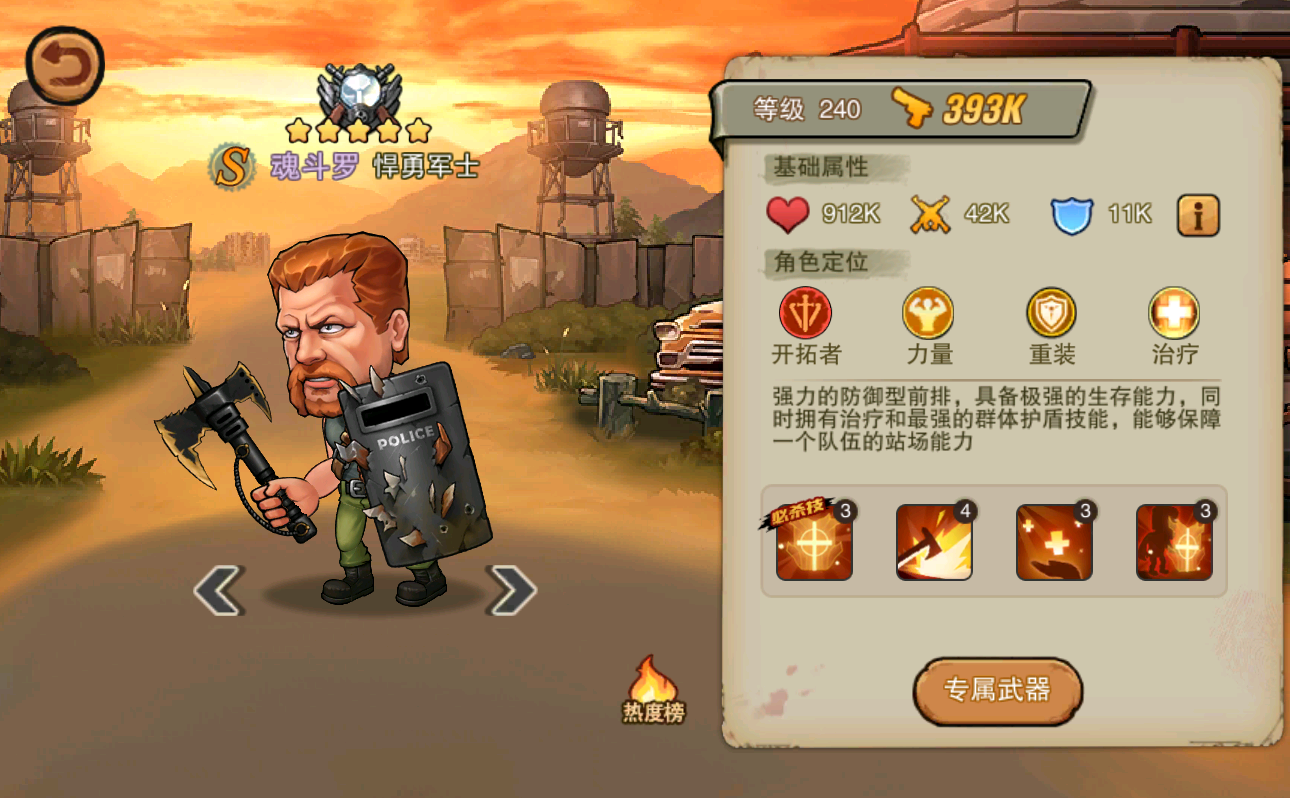 必杀技【庇佑之手】是为全员友军增加450%攻击力的护盾,可以说是人人都是坦克,因此魂斗罗放在适合抗压能力强、持续性伤害的队伍中。
