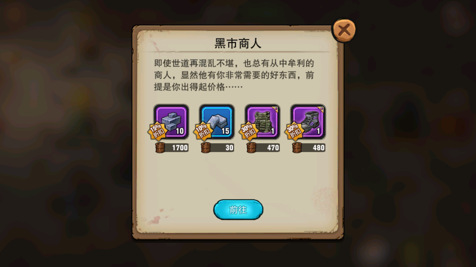 进入第二区域之后会出现黑市商人,里面的物品也是随机刷新的,都是用石油购买。这里其实也不建议购买,里面都是一些无关紧要的装备,前期都是过度装备,有时候刷新出来的甚至还没挂机给的品质好,看看就行。