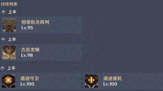 第三场怪物数量较多,足足有四个怪物,先出两个遗迹守卫,后出两个遗迹重机。如果你的配队过于重视对单,有可能会花更多的时间才能通过。前两场都十分利好胡行钟队伍,然而第三关胡行钟却表现不是很好。