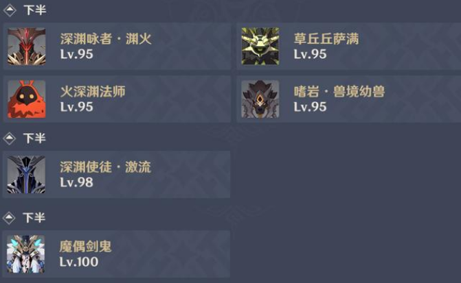 下半场主要问题在12-2的水使徒,用胡行钟去打很难满星,只能靠第二遍用神里永冻队或者雷国队去补星。不过优点也很明显,打剑鬼就非常轻松了。