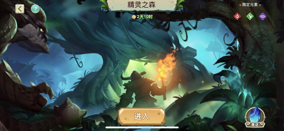 5.32级解锁森林之森,每次限定不同元素的元素龙参与,驯龙师们可以在其中获得矿石、粮食、黄金,也会碰到需要打倒的邪恶巨龙,矿石可在精灵之森商店购买龙纹强化巨龙。