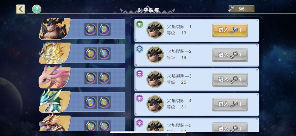 3.17级解锁时空裂缝,驯龙师们通过战斗就可获得龙纹等奖励,每日可免费战斗2次,最多累积到5次,想要变强的驯龙师们不要错过哦~