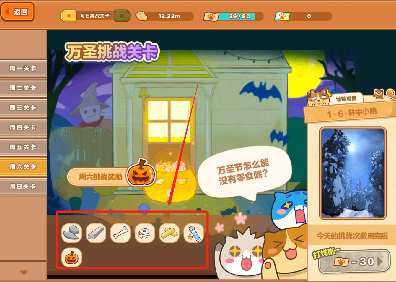 可在下图位置查看当前关卡掉落材料