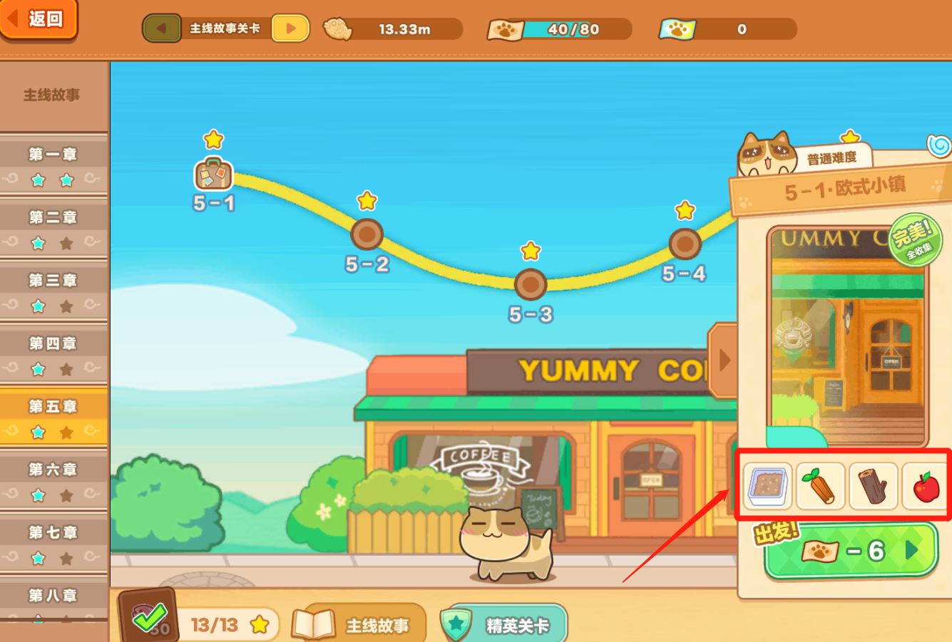 (1)材料关卡,在主页面点击旅行后,在上方点击此处可切换为材料关卡