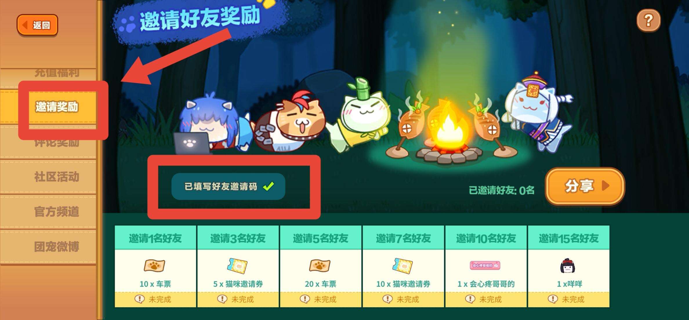 以上就是猫旅馆物语邀请码在哪填攻略全部内容了,小伙伴们看完这篇猫旅馆物语邀请码在哪填攻略文章是不是恍然大悟呢,赶快去游戏里和别人分享这条经验吧!