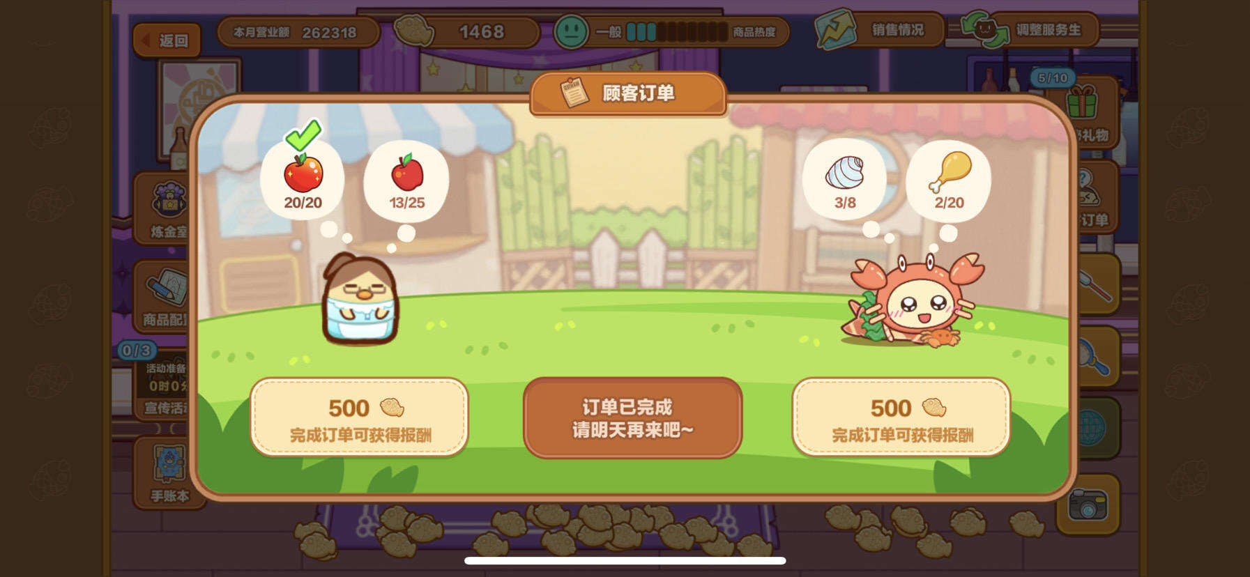 打完以后升级农场,在家中每天会有顾客订单,需要食材的可以做,需要建筑材料的一定不要做