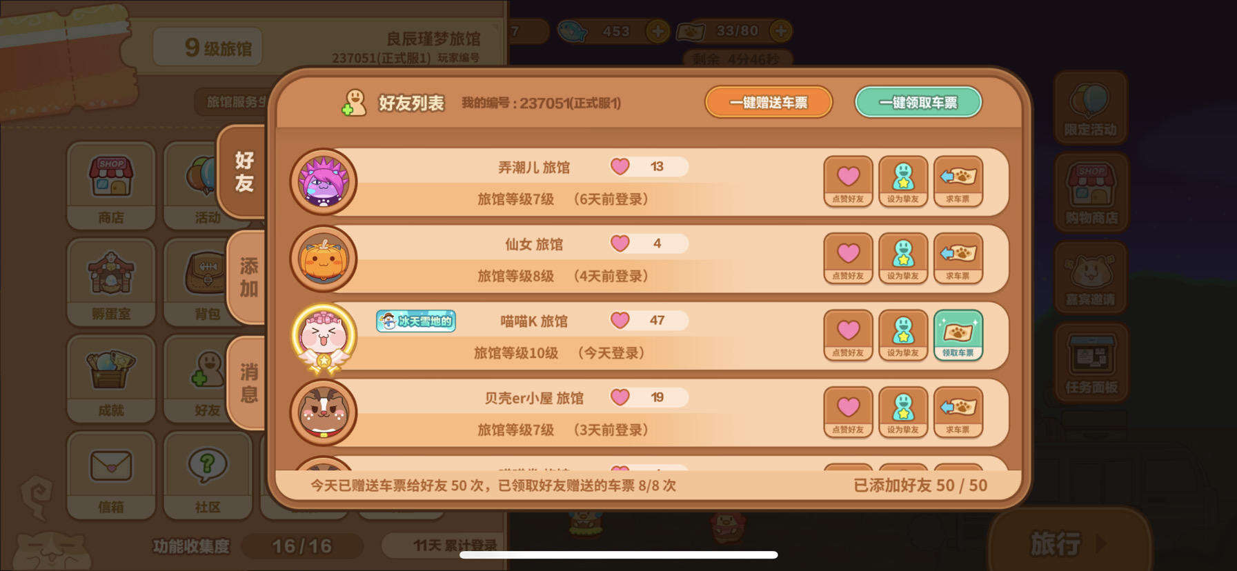最后再说一下每天体力花费,通过好友这里每天可以领40体力。