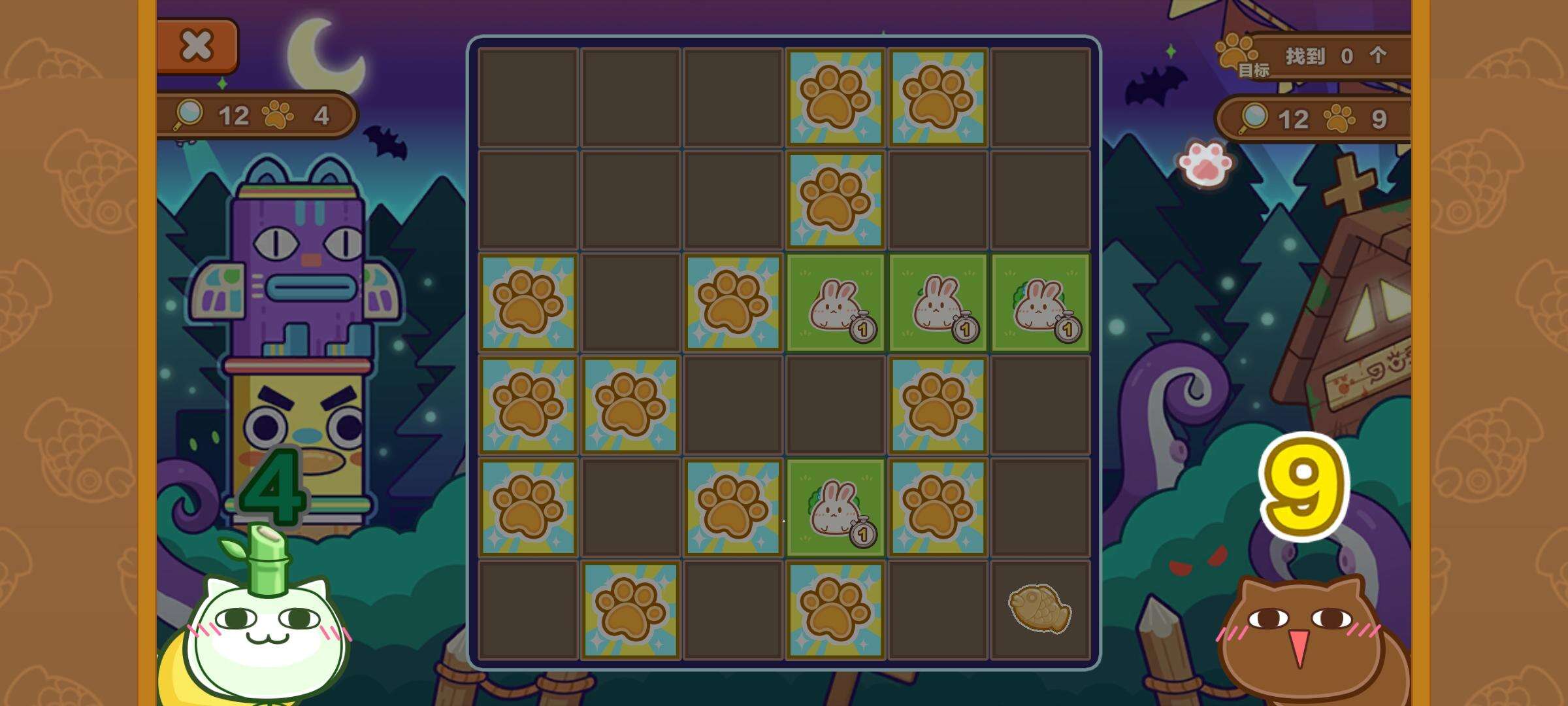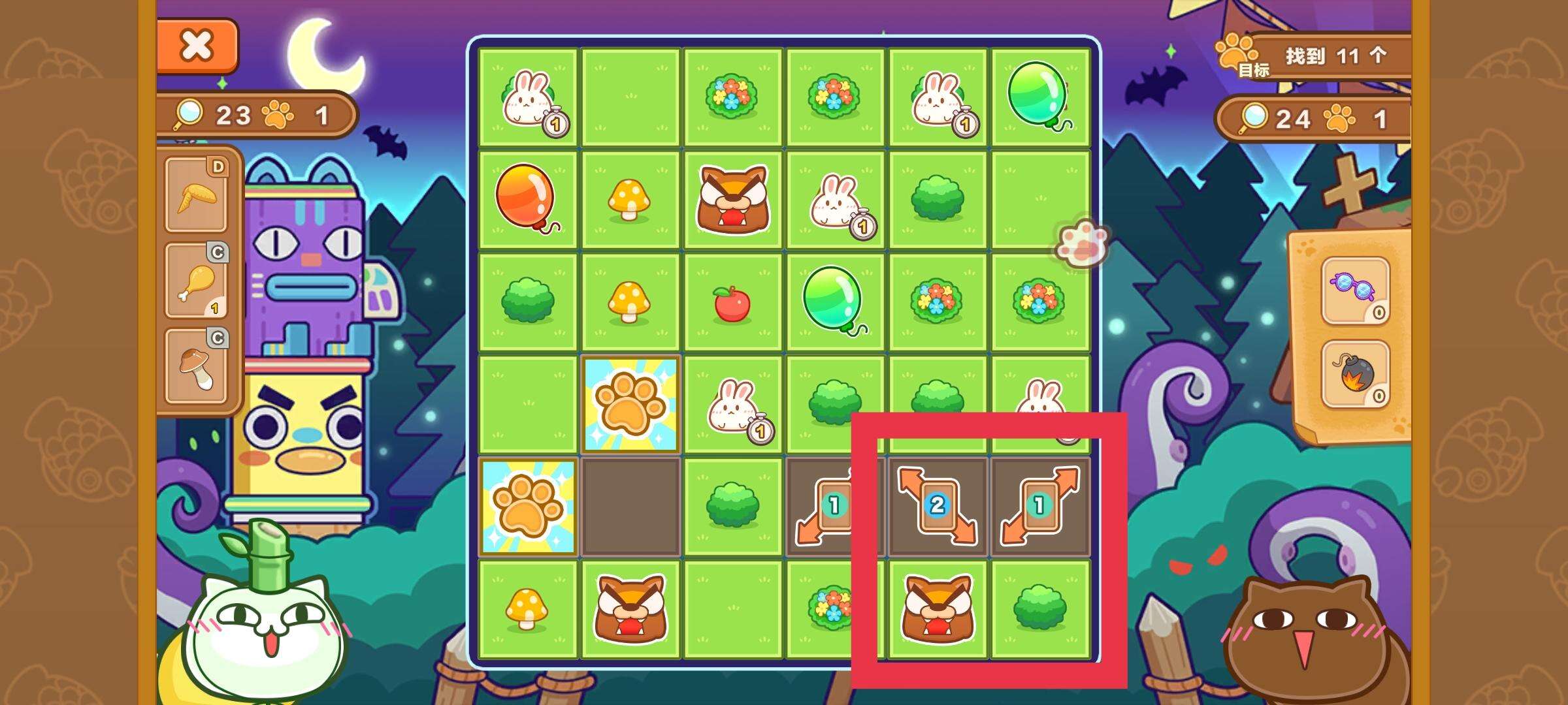 2-如果不知道点哪里,就点翻出来的小爪印相邻的,如图点相邻的有很大概率蒙中