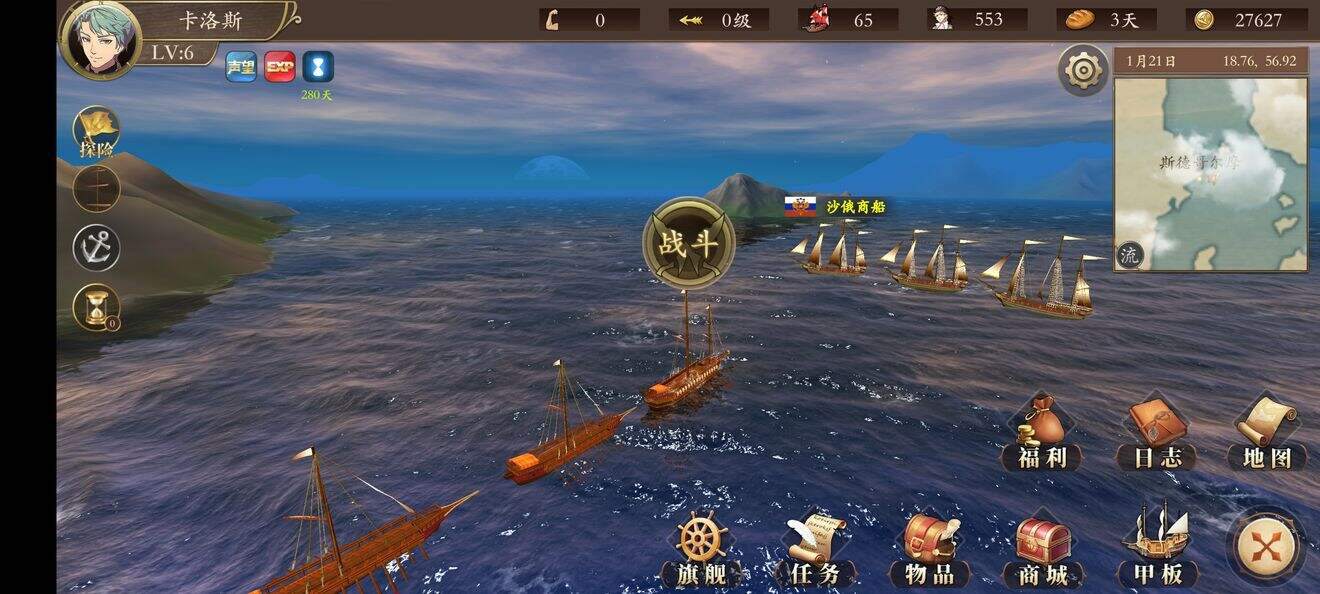 梦回大航海加勒比五中排开局商城只买了两种双倍和会计妹子,跳过新手引导,主线做到前往卑尔根打架这一步,这时候我们有大概80w金币,甲板上人员配置好,货仓设置为最大补给量,直接前往斯德哥尔摩!