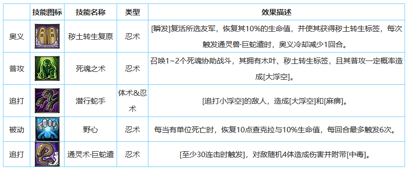 火影忍者OL手游兜大蛇奥义复活队友,触发追打缩减奥义冷却的话能让复活奥义用得更多,还是很厉害的。