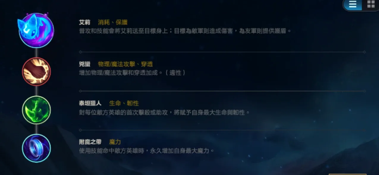 在阿姆姆的装备方面,主要选择深渊,深渊的装备被动可以提升阿姆姆附近的英雄所受的魔法伤害,可以给炸弹人增伤,然后选择冰杖,鬼书打功能性。天赋选择余震,余震可以提升阿姆姆的双抗提高坦度,也能为阿姆姆提供一点伤害。