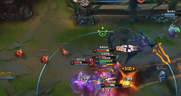 莎弥拉线上主要利用Q技能进行消耗,配合带控制效果的辅助击飞敌方英雄,从而获得优先攻击的权利,E技能的突脸可以迅速贴近敌方英雄打出伤害,触发大招之后无限输出。团战中莎弥拉要尽量在团战打开之前将评分打到B或者A、S评级,时刻准备着大招的释放。