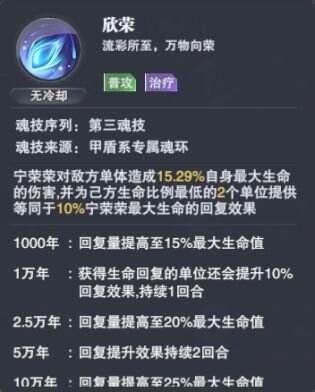 普攻,造成一定比例自身最大生命值伤害,对己方两个生命比例最低的,提升一定比例回复效果