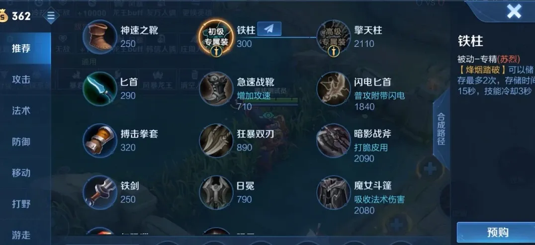 他的专精装备名字叫做擎天柱,可以通过金钱不断升级。需要花费三百块来买,最终合成需要花费两千多金币。售价差不多,跟一把暗影战斧类似。但是它提供的作用是不可比拟的,从属性上面来看。他可以为你增加20%的暴击率,还有九十点的物理输出。可以看出,这件装备更适合进攻性强的苏烈使用。也就是所谓的上单苏烈。